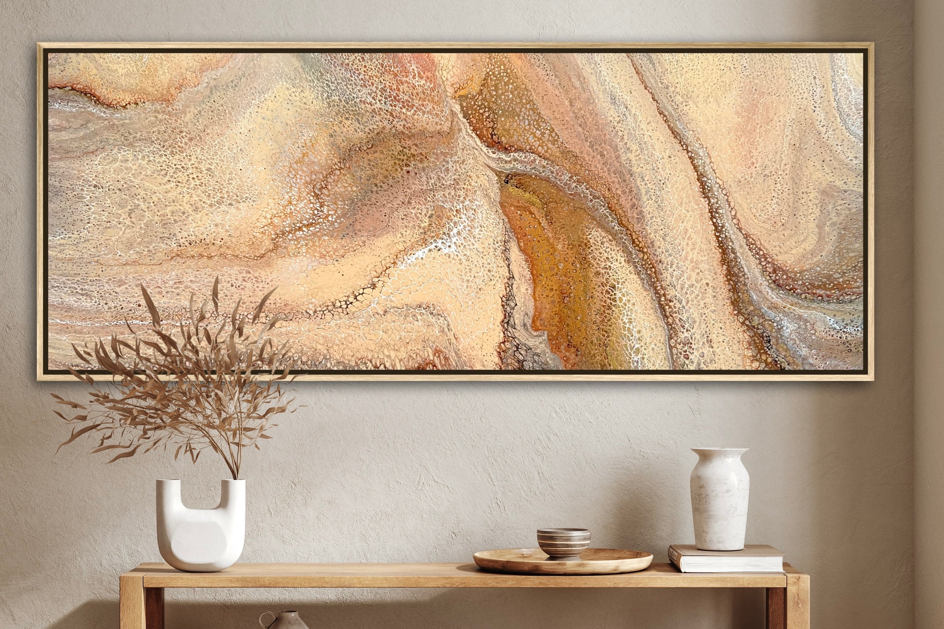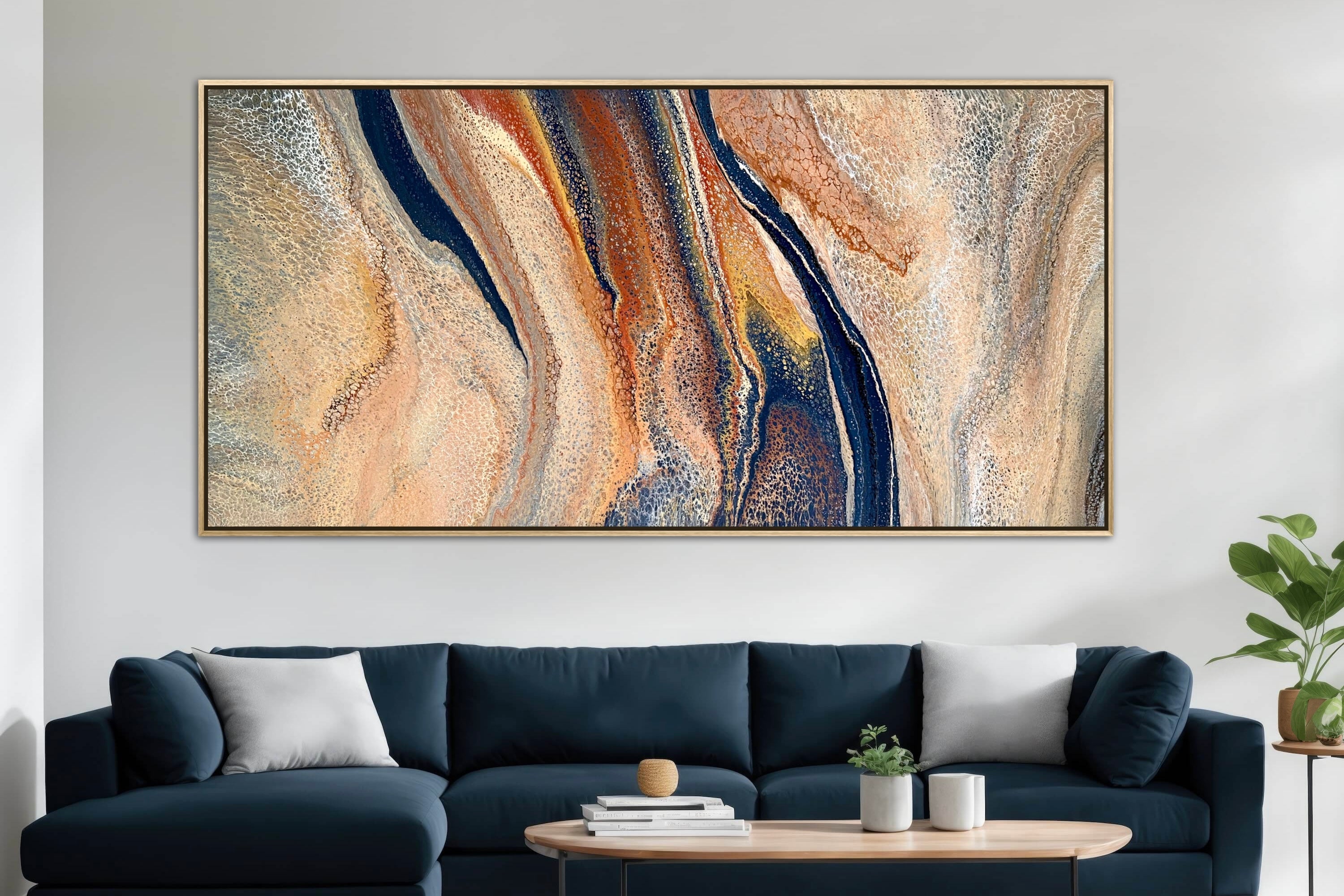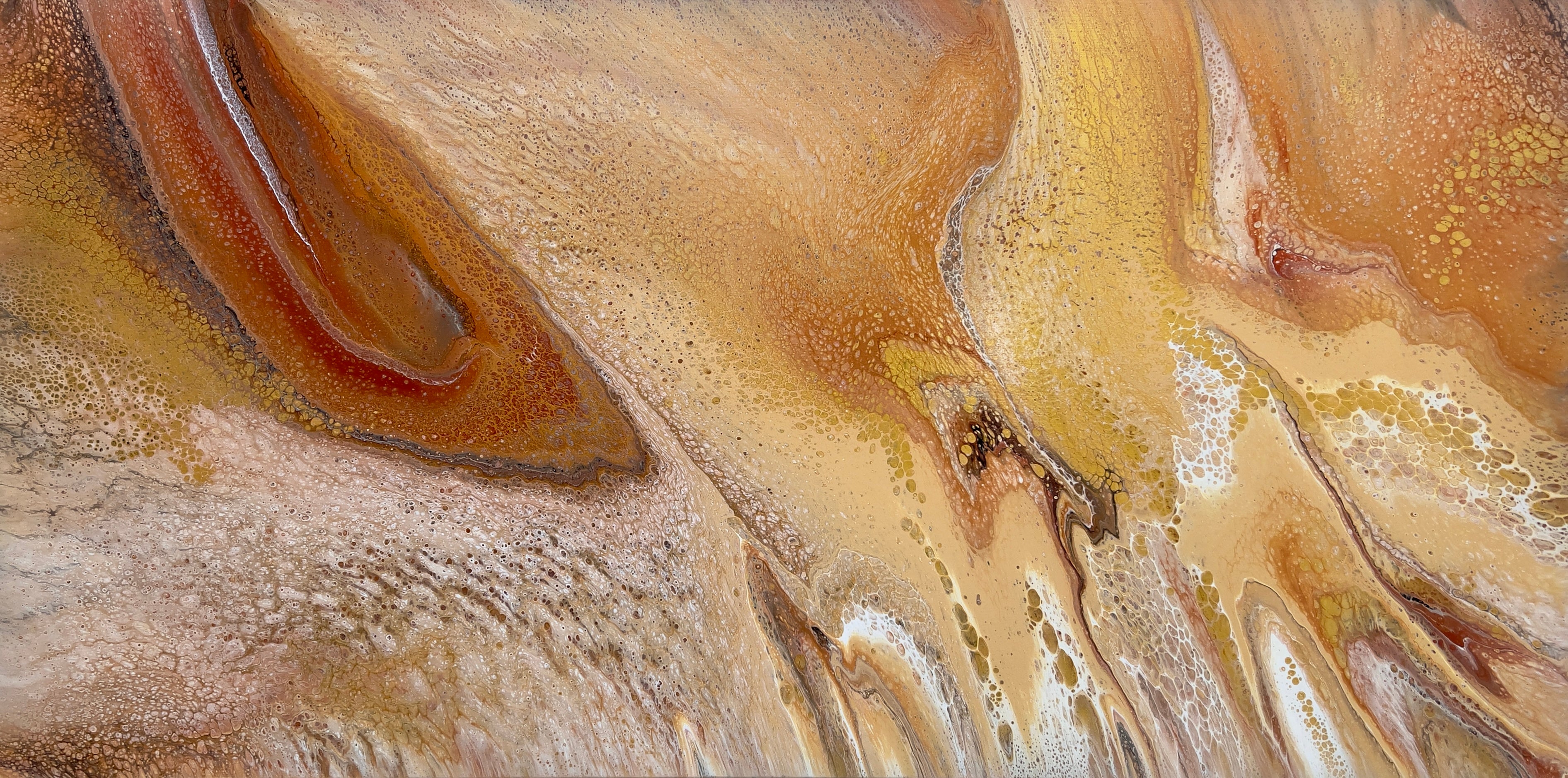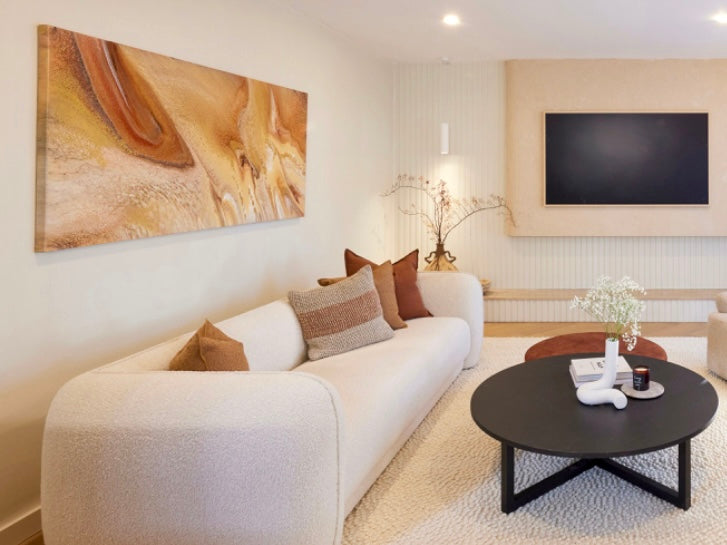 Angela Roskell is Australia's most collected fluid acrylic artist. She is known for her large-scale abstract works that balance intentional structure with intuitive movement. Her paintings are defined by earthy colour palettes, striking contrasts, and a deliberate sense of flow.