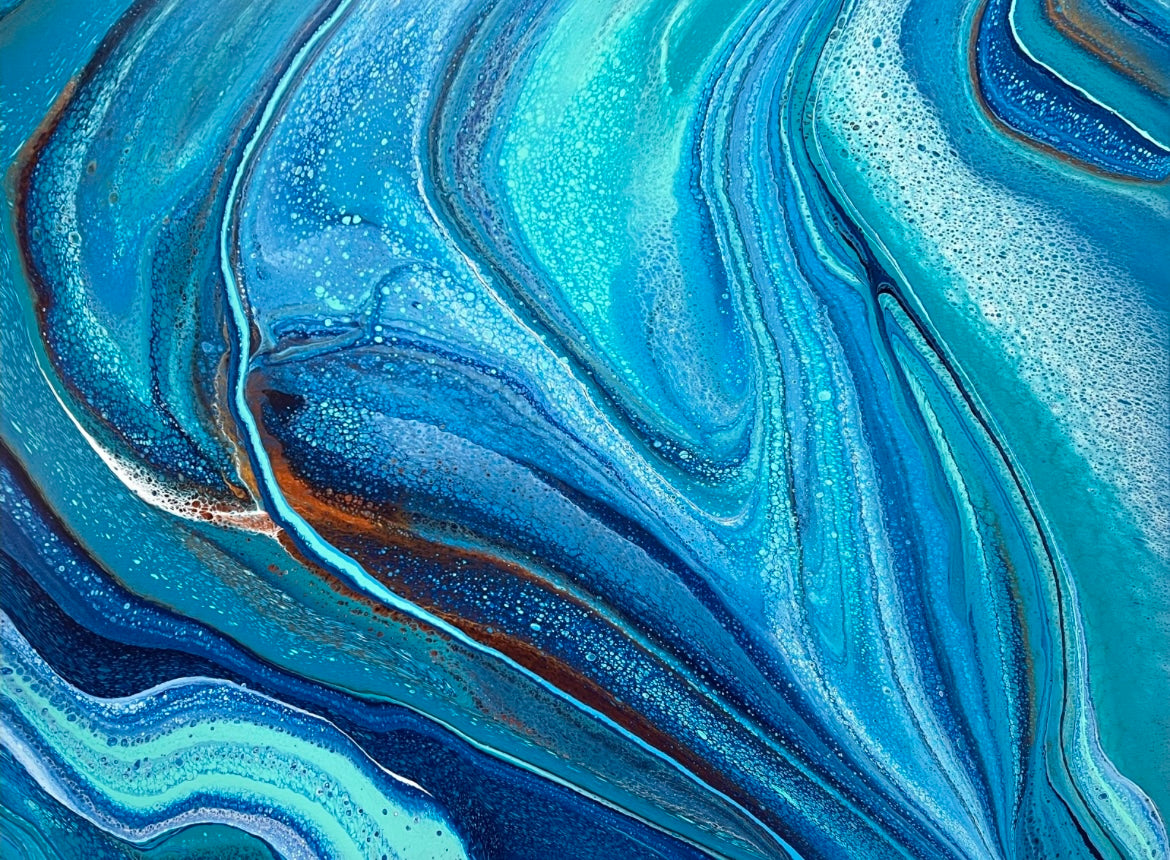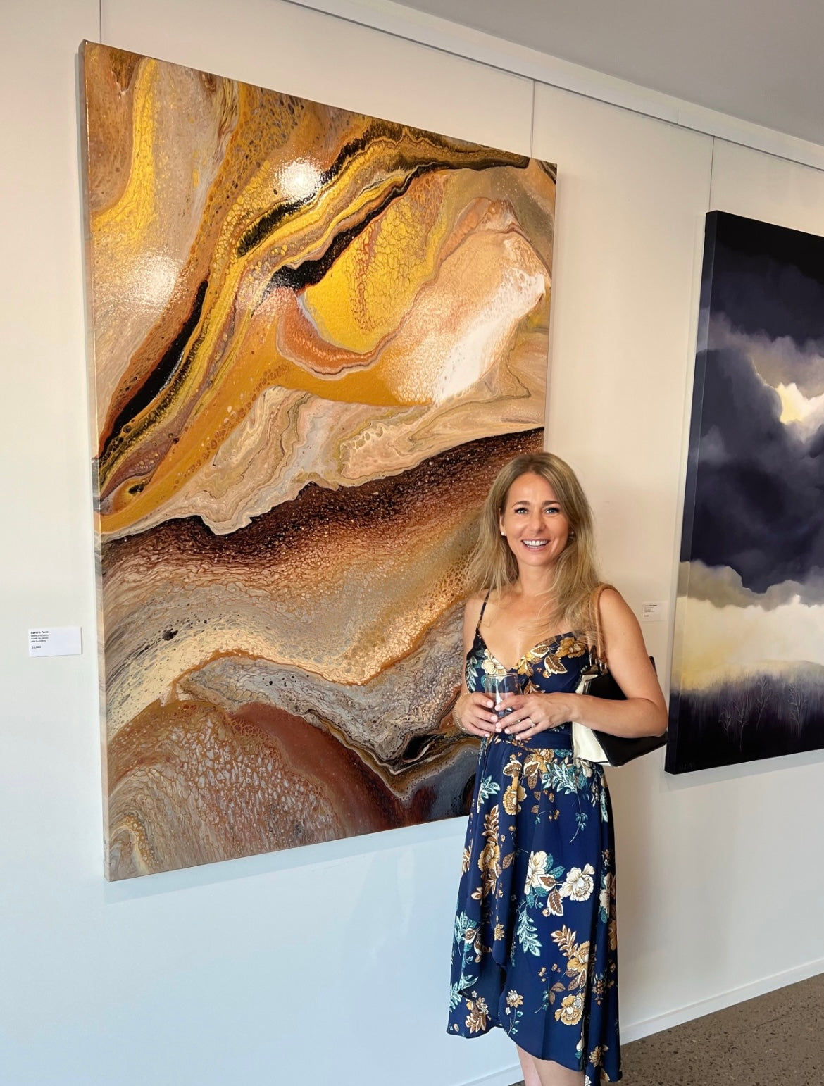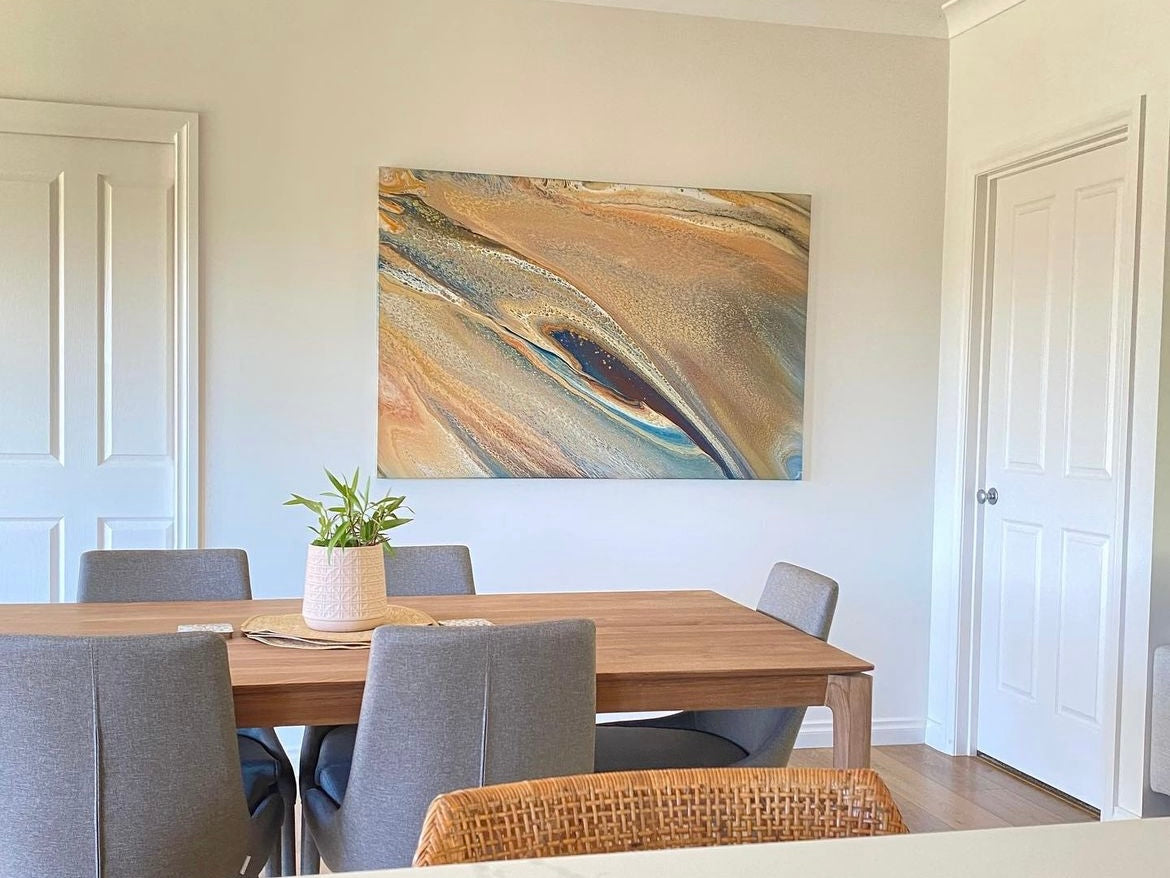 With over 10 years experience working exclusively with fluid acrylics, Angela has developed a signature approach that blends visual impact with process-driven experimentation. Her work has been featured in exhibitions, home design media and major TV shows, including The Block.
