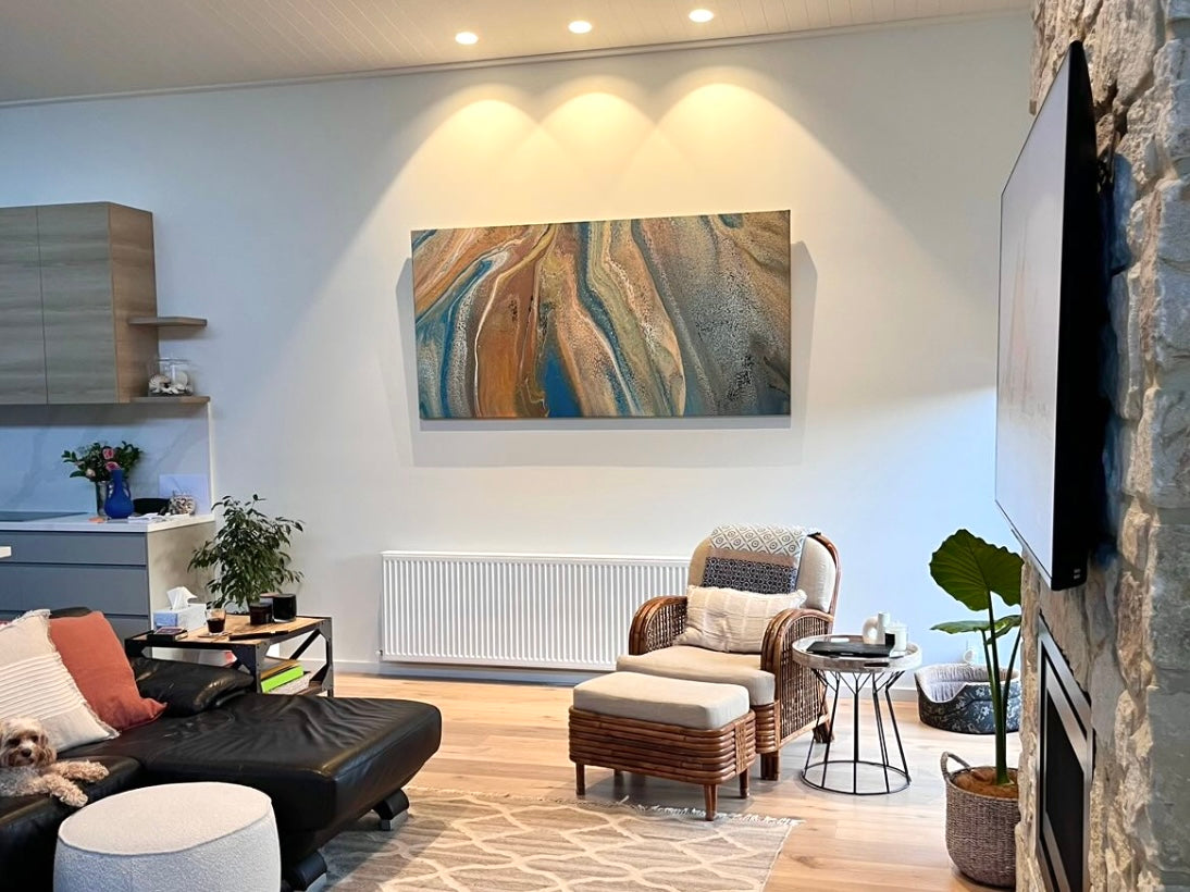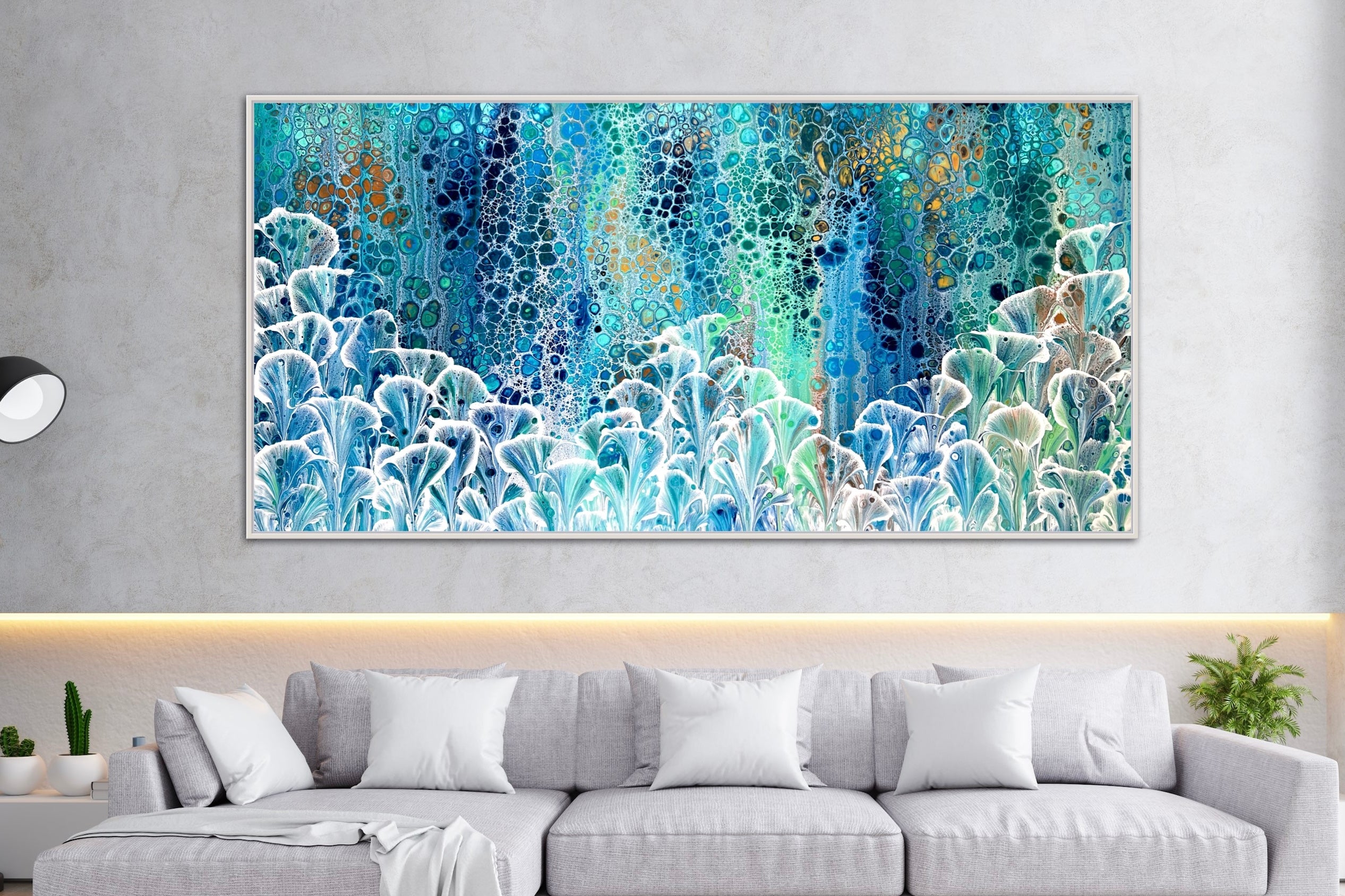 Angela Roskell's fluid acrylic paintings are designed to bring a sense of movement, depth, and calm into contemporary spaces. From sweeping forms to layered detail, each piece is created to catch the eye from across the room while revealing finer elements up close.