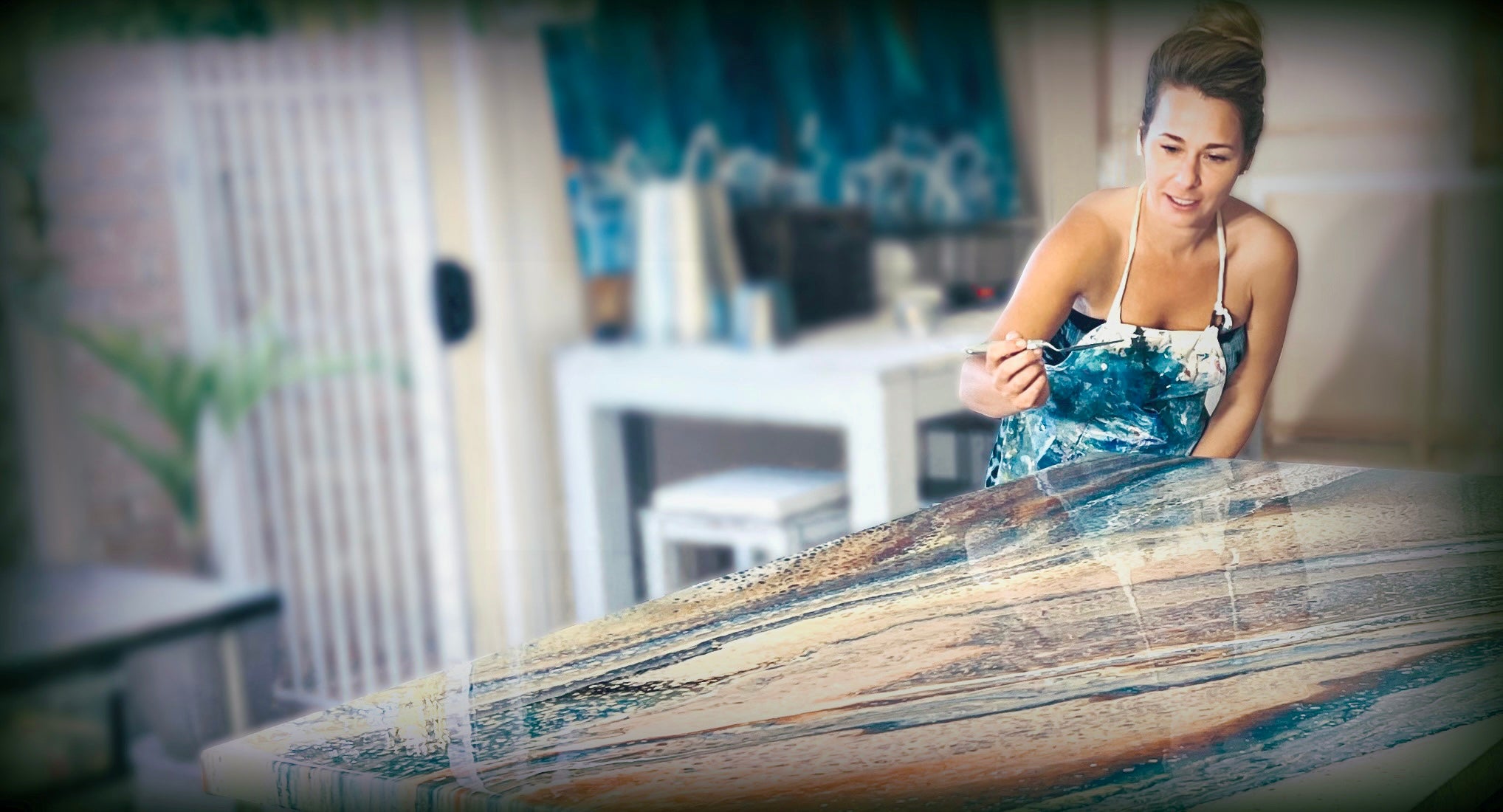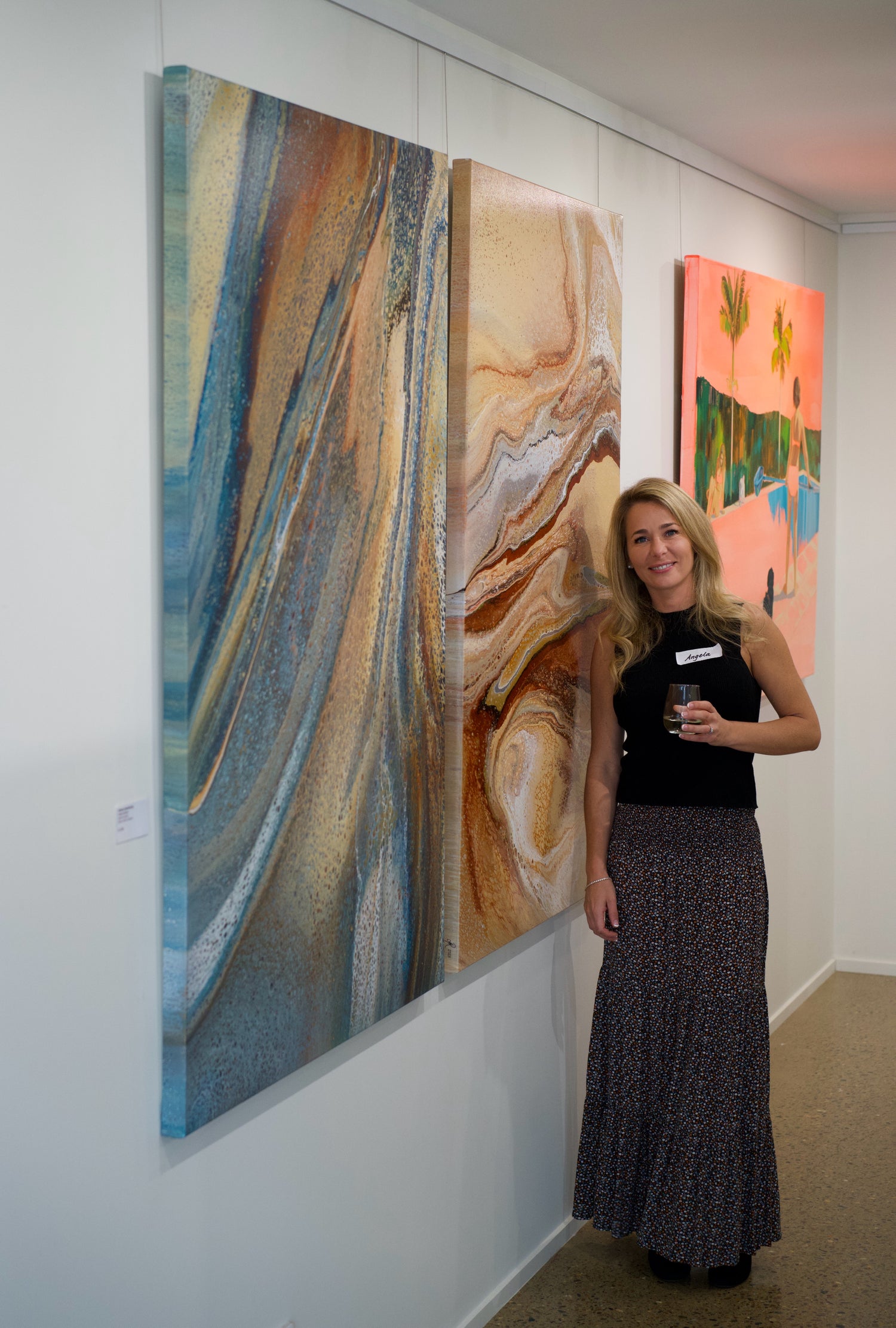 Hello and welcome to my studio, where I've been creating fluid acrylic artworks for more than a decade. My paintings are inspired by the landscapes I've called home: the rainforests of NSW, the golden beaches of QLD and the mineral-rich terrain of WA. Rather than depicting these places literally, I translate their atmosphere into flowing colour, layered depth, and luminous movement.