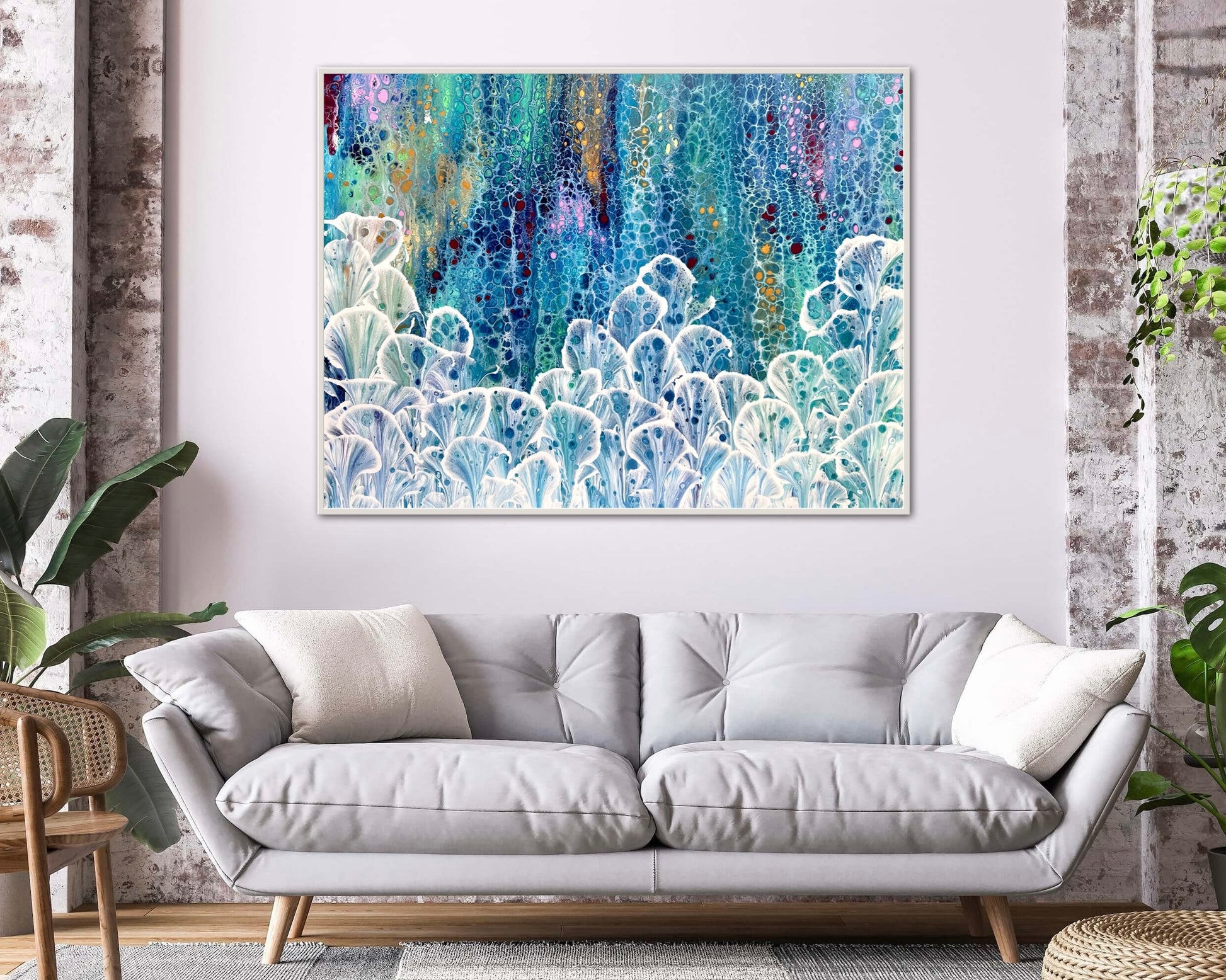 'In situ' photos have been included to help with visualisation of the artwork in your home. In situ photos provided were created using the ArtStage app and may not be perfectly to scale. This being said, every effort has been made to represent the size of the art accurately but please read the dimensions of the artwork to ensure it fits your space perfectly. Where provided, photos of framed art are for illustrative purposes only.