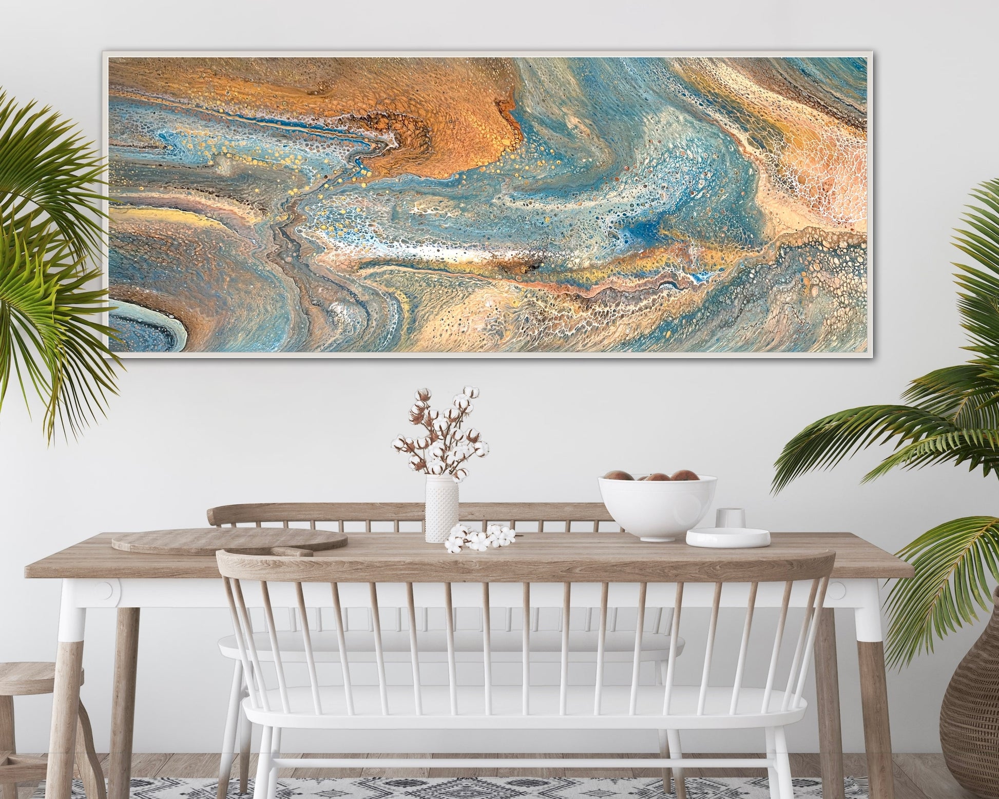 'In situ' photos have been included to help with visualisation of the artwork in your home. In situ photos provided were created using the ArtStage app and may not be perfectly to scale. This being said, every effort has been made to represent the size of the art accurately but please read the dimensions of the artwork to ensure it fits your space perfectly. Where provided, photos of framed art are for illustrative purposes only.