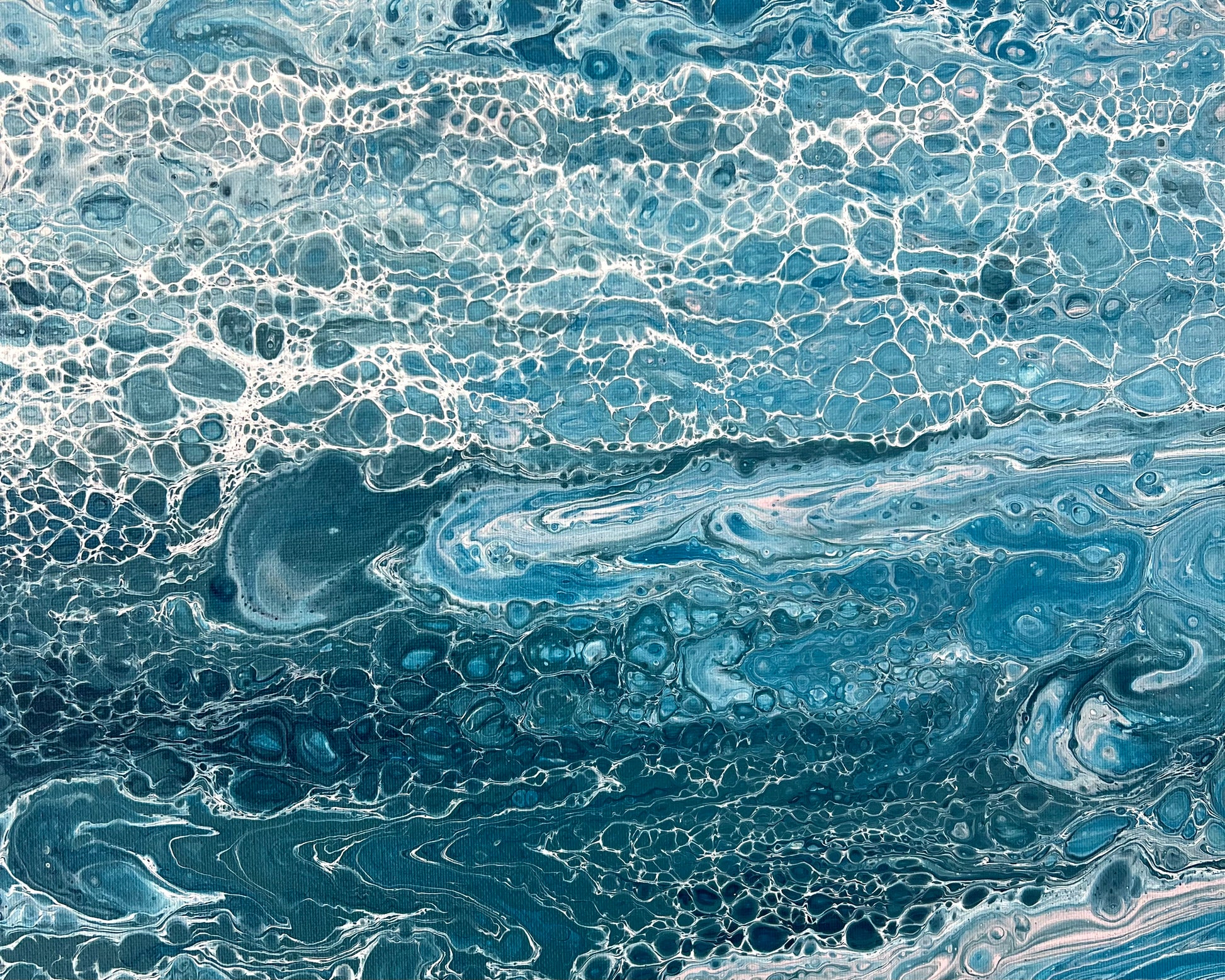 This painting was created using techniques to encourage flow, interaction, and separation of colours. This allows delicate lace and soft cell formations to emerge, giving the painting movement and depth that cannot be replicated.