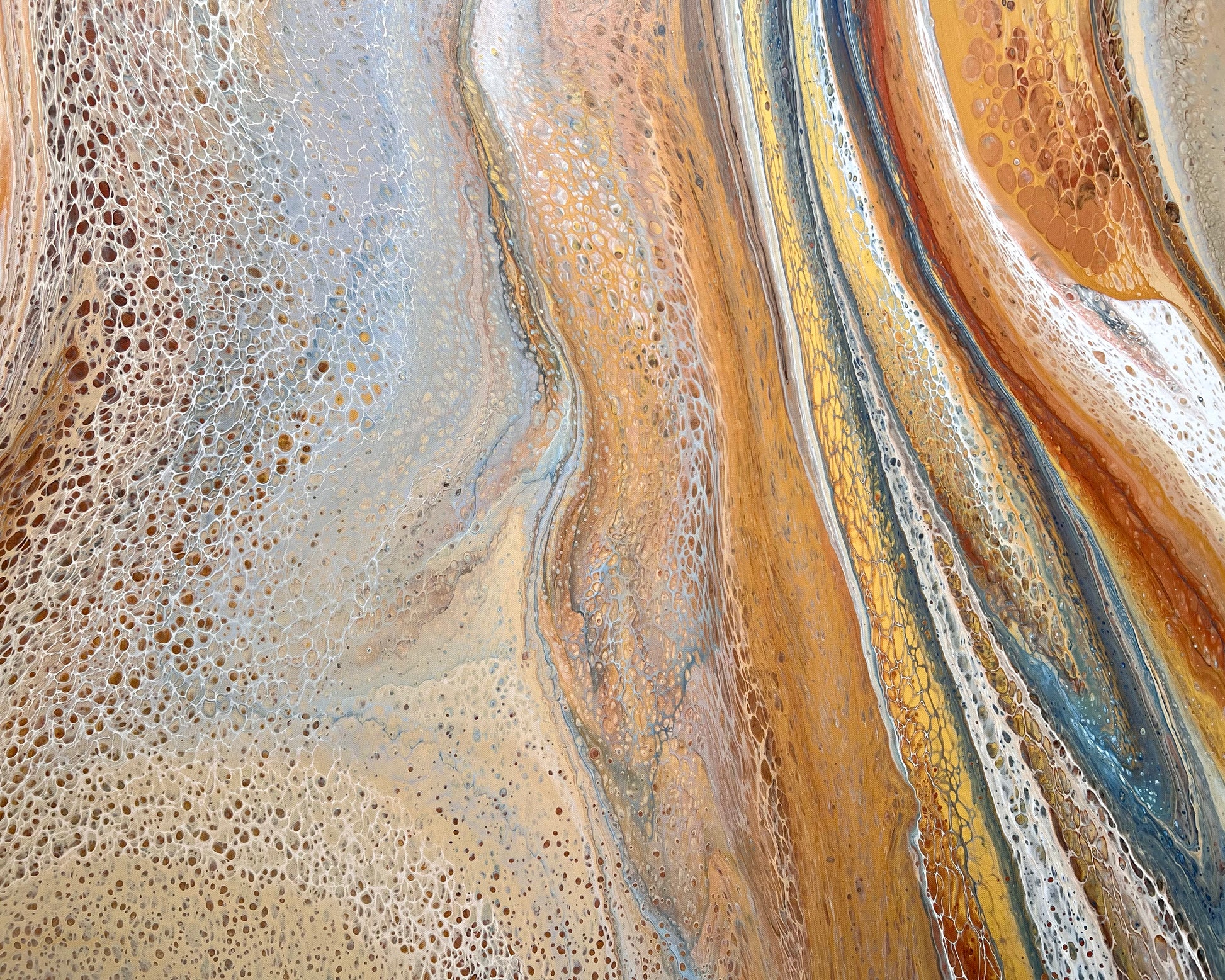 Created through layered fluid techniques that guide pigments to flow, merge, and separate, Mineral Expanse reveals intricate lacework and delicate cells, with a richness that draws the eye both in close and across the entire canvas.