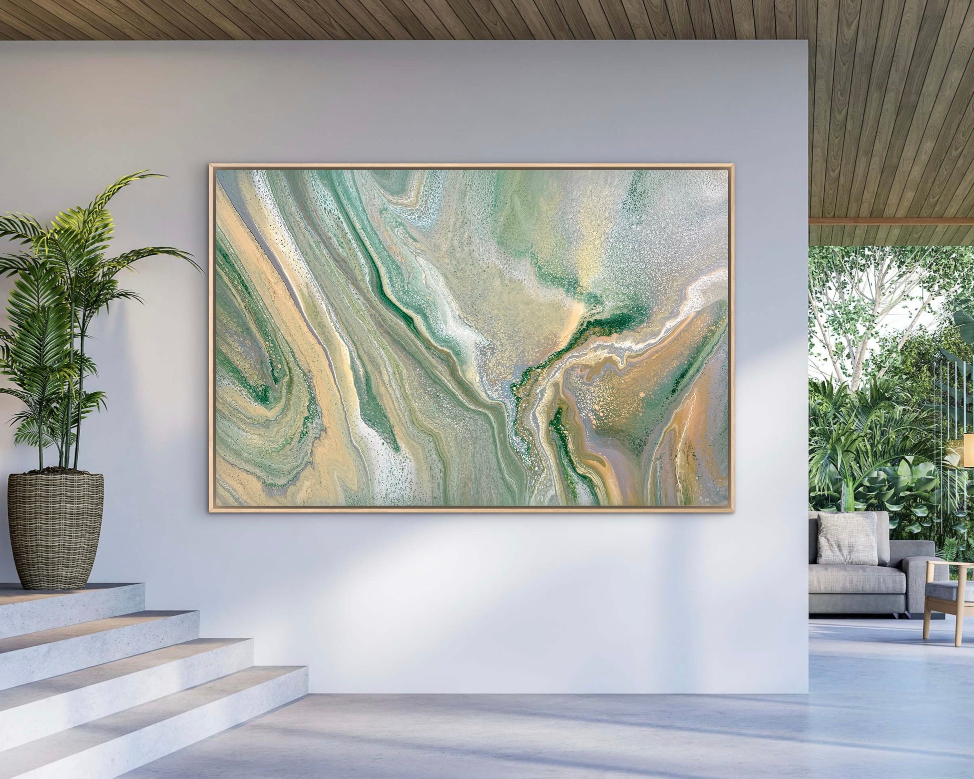 Made with layered fluid techniques, Nature’s Divide moves gently across the canvas with soft flow and natural rhythm.