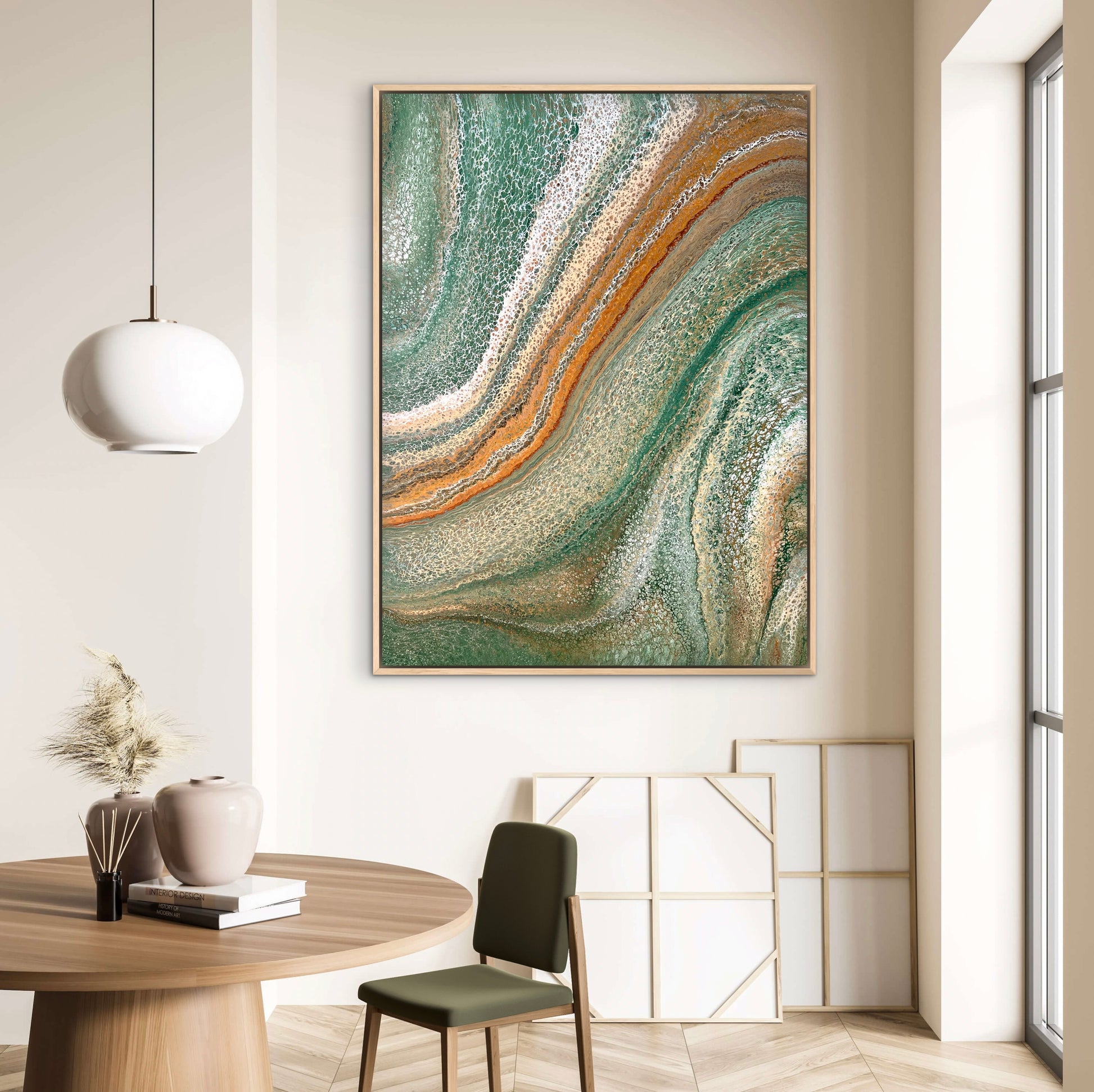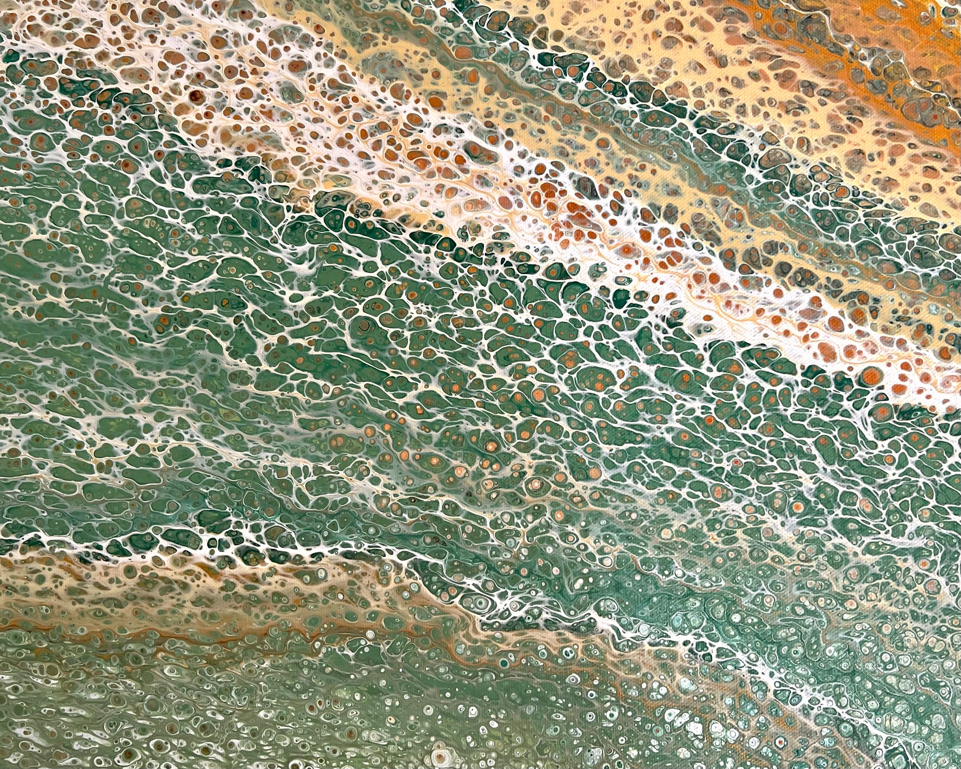 Created through layered fluid techniques, Nature’s Pass flows with natural warmth and shifting movement.