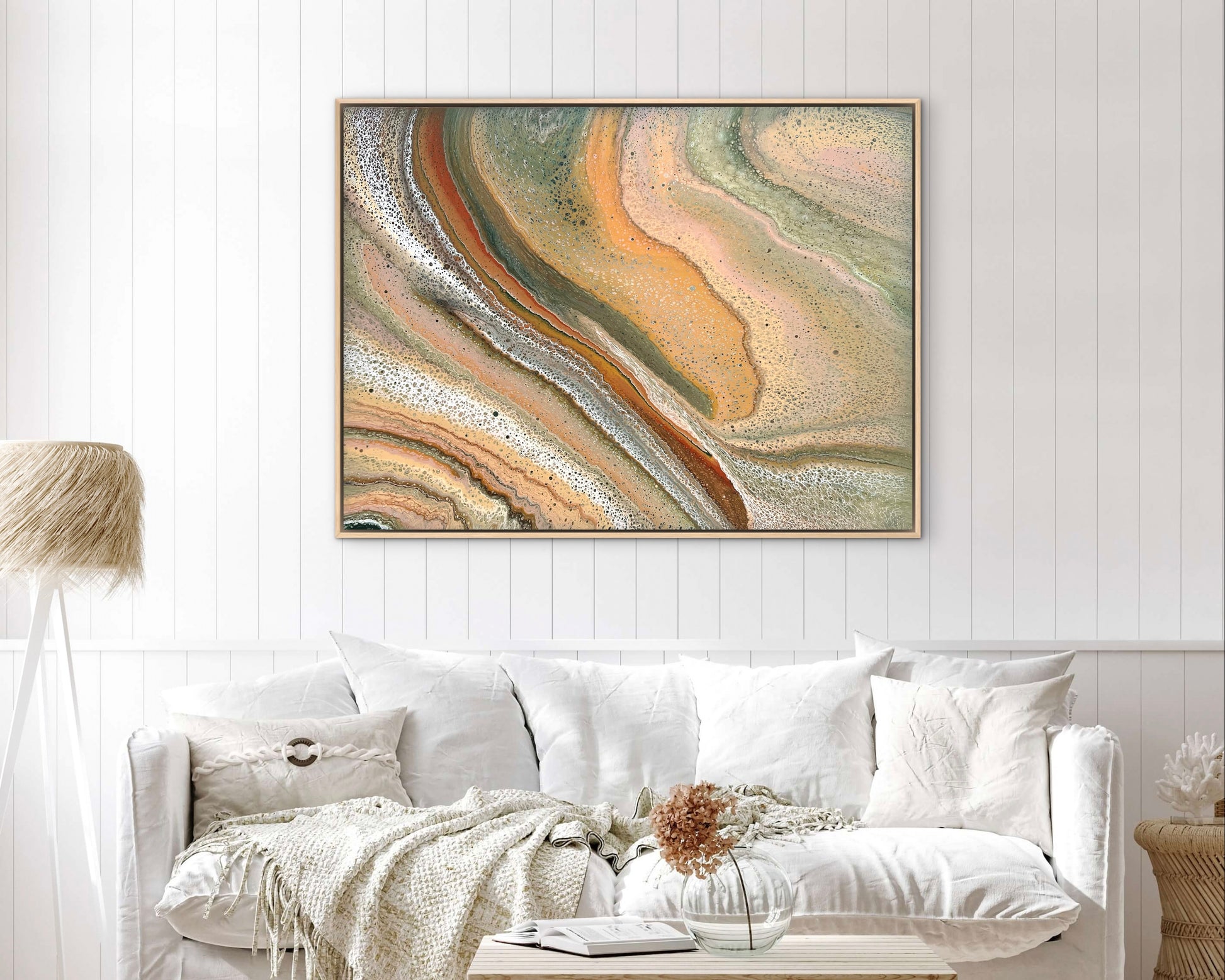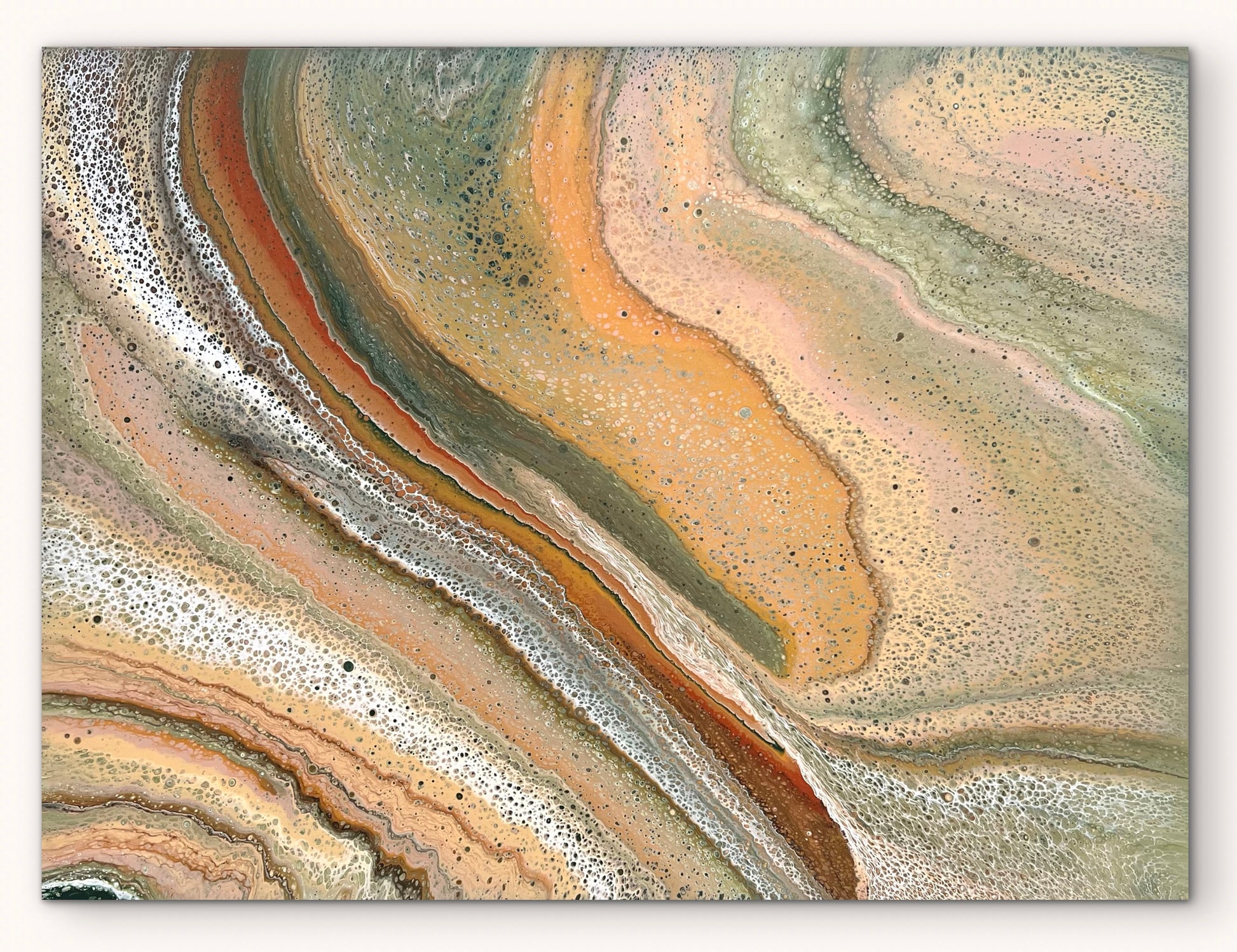 Created through layered fluid techniques, Nature’s Trace flows with earthy warmth and shifting movement.