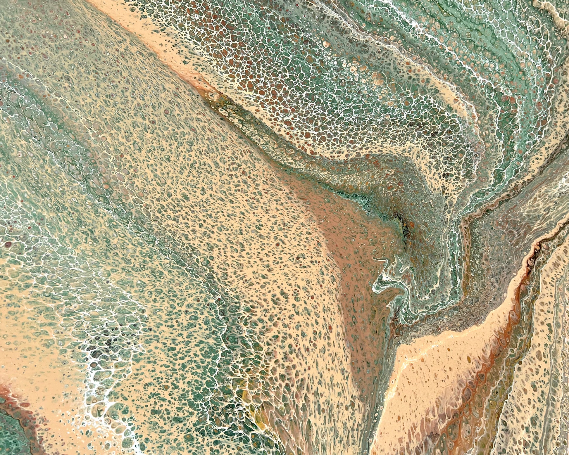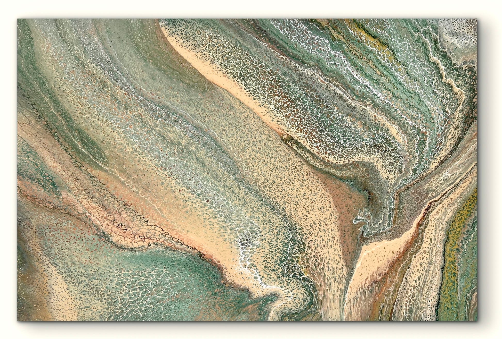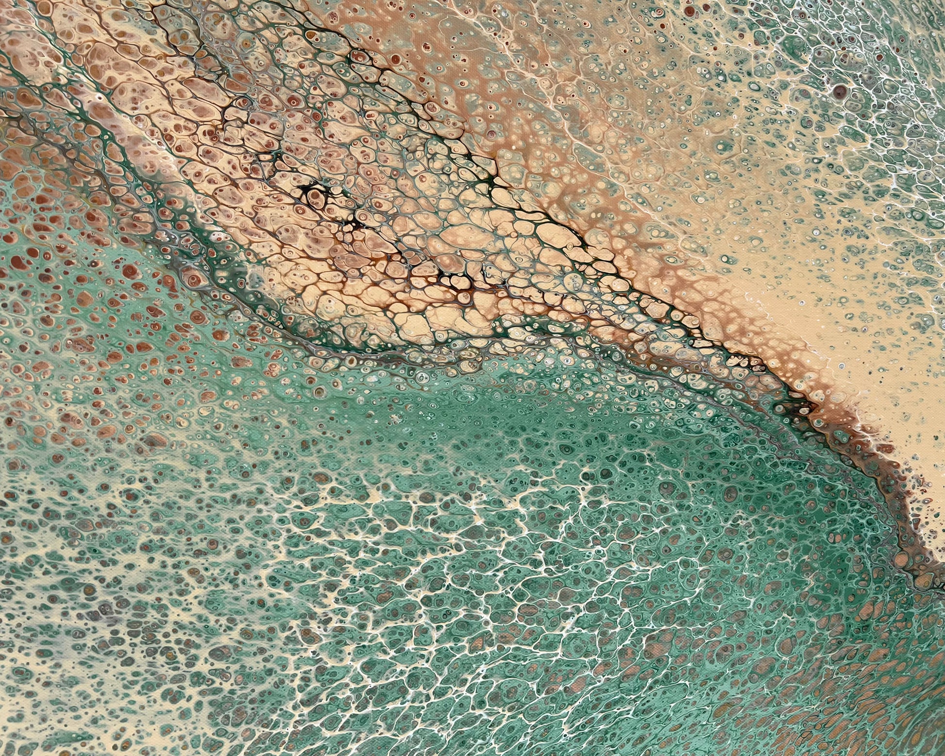 Full of flowing movement and organic detail, this nature inspired painting was created with fluid techniques that allow the colours to interact and form naturally. Lace-like patterns and layered passages make the piece engaging up close, while its bold scale brings impact to any space.