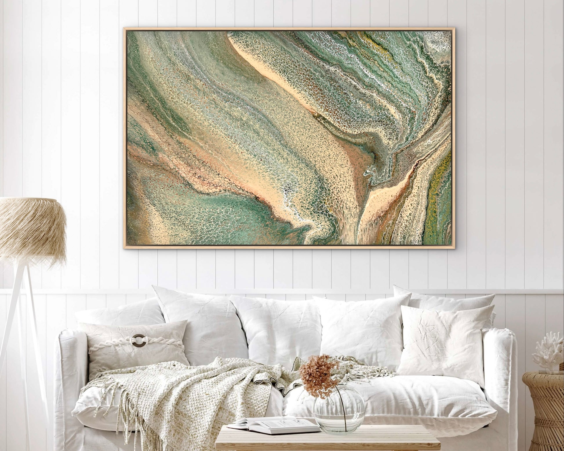 'In situ' photos have been included to help with visualisation of the artwork in your home. In situ photos provided were created using the ArtStage app and may not be perfectly to scale. This being said, every effort has been made to represent the size of the art accurately but please read the dimensions of the artwork to ensure it fits your space perfectly. Where provided, photos of framed art are for illustrative purposes only.