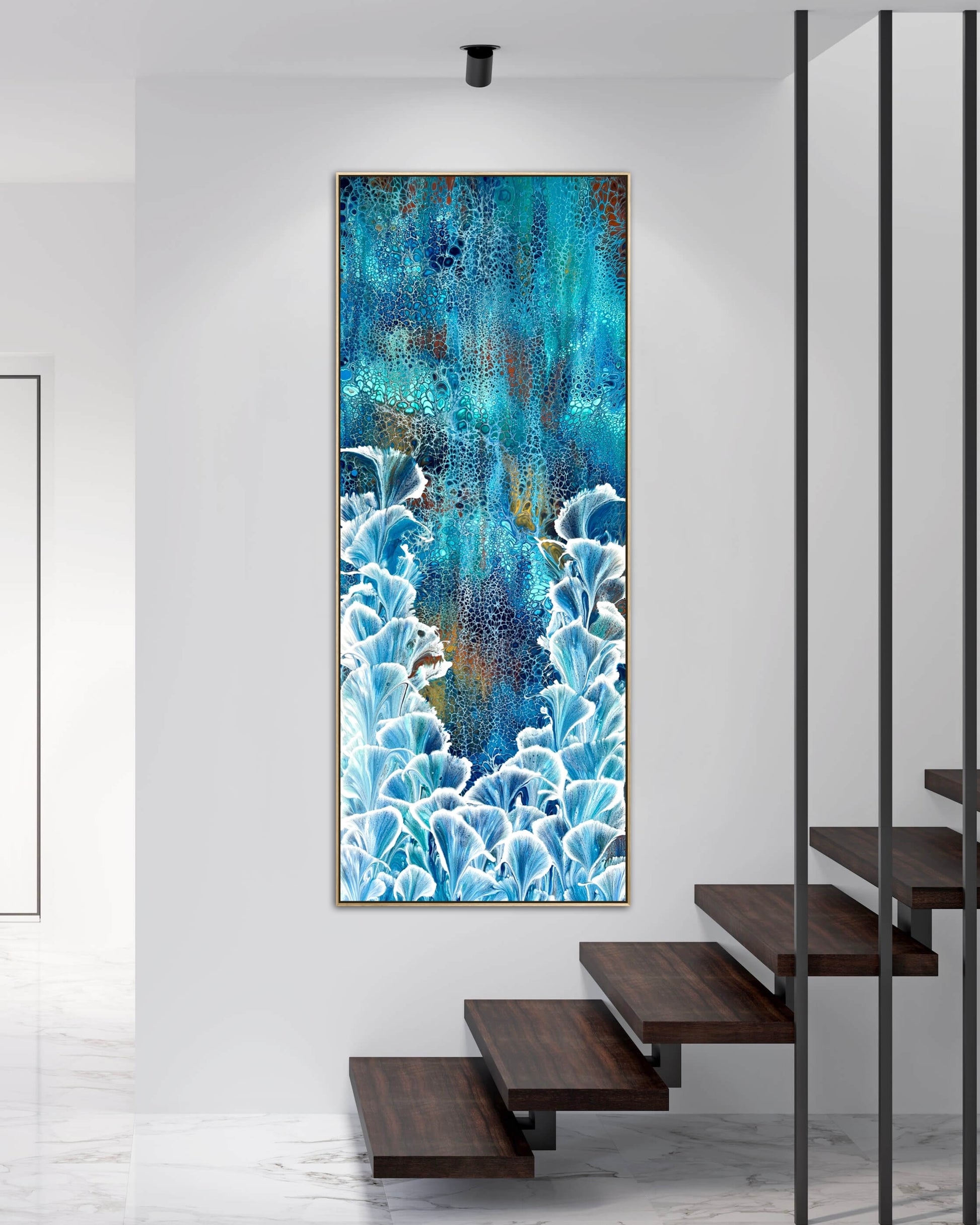 This artwork has been finished with layers of professional grade archival varnish for extra protection, colour enhancement and a beautiful smooth finish. The metallic paint used reflects the shifting light beautifully really bringing the painting to life.