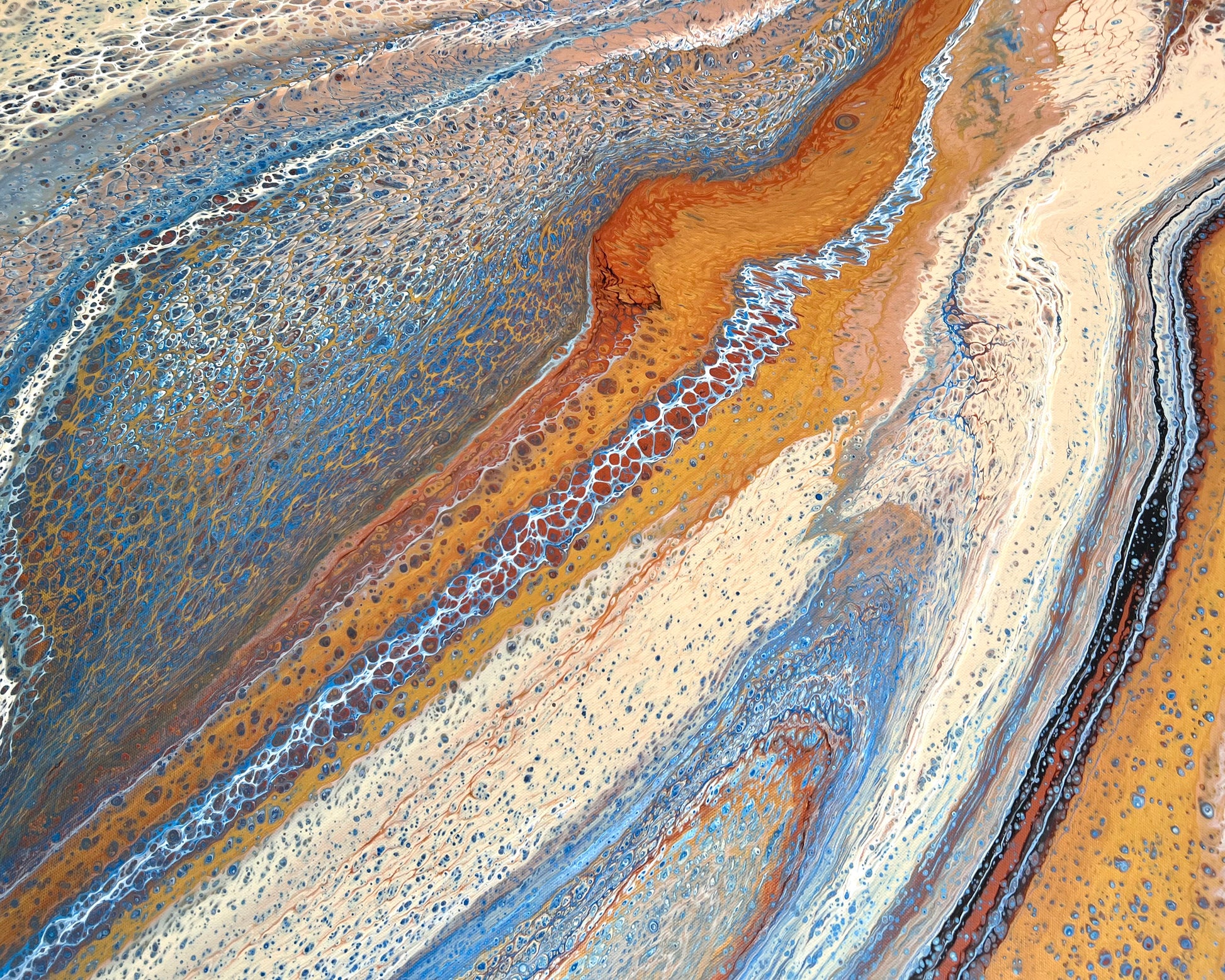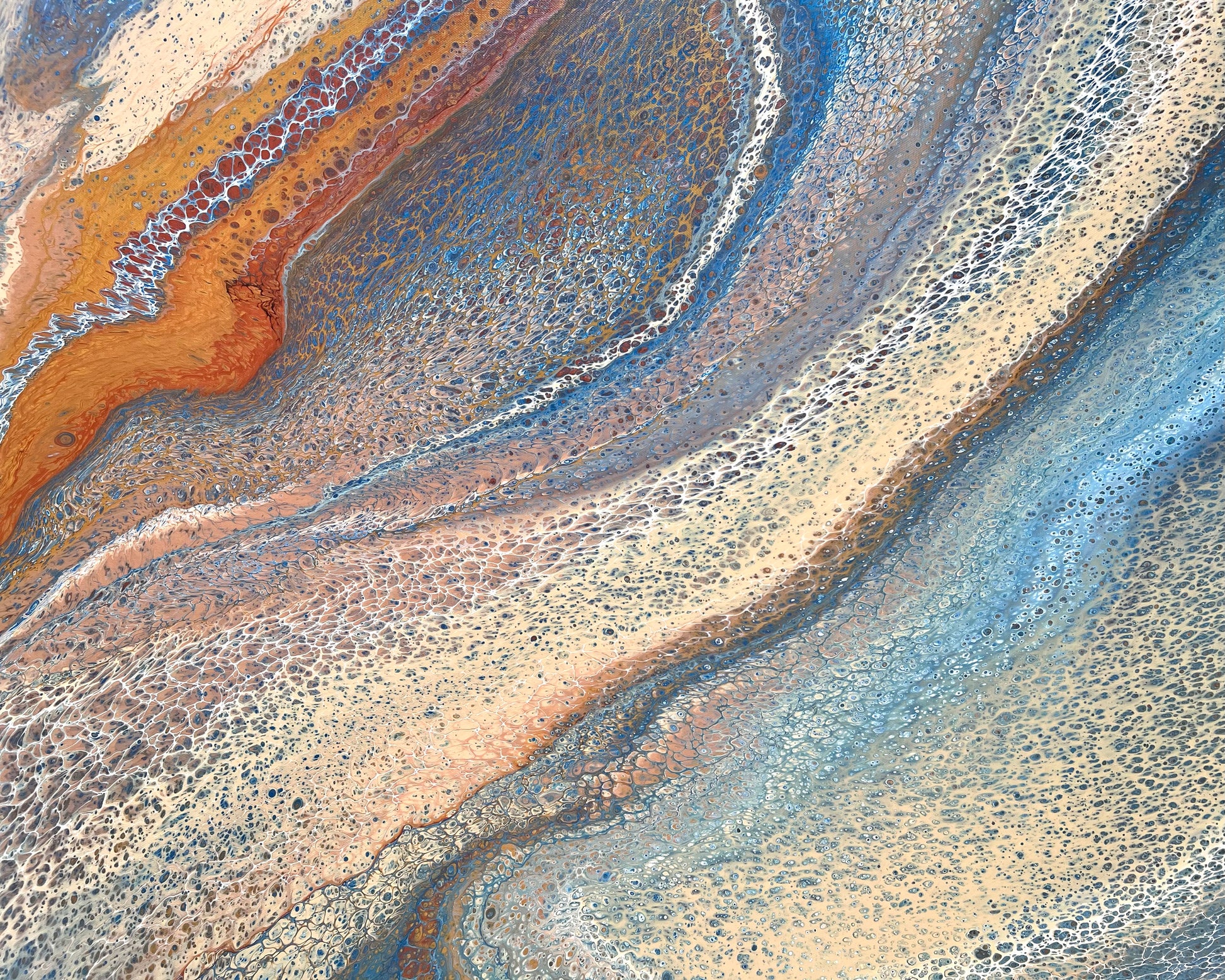Created using layered techniques that enhance flow, interaction, and separation of pigments, Within the Light reveals intricate lace and cellular patterns. Subtle shifts in movement allow hidden colours to emerge from beneath, giving the work a depth and complexity that can never be replicated.