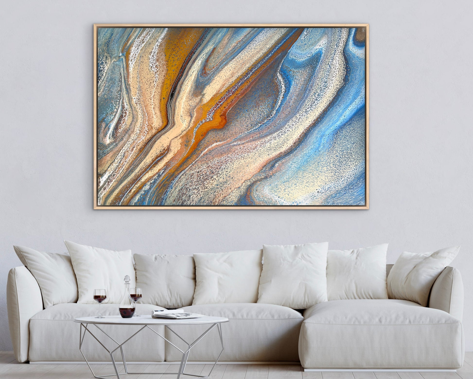 'In situ' photos have been included to help with visualisation of the artwork in your home. In situ photos provided were created using the ArtStage app and may not be perfectly to scale. This being said, every effort has been made to represent the size of the art accurately but please read the dimensions of the artwork to ensure it fits your space perfectly. Where provided, photos of framed art are for illustrative purposes only.